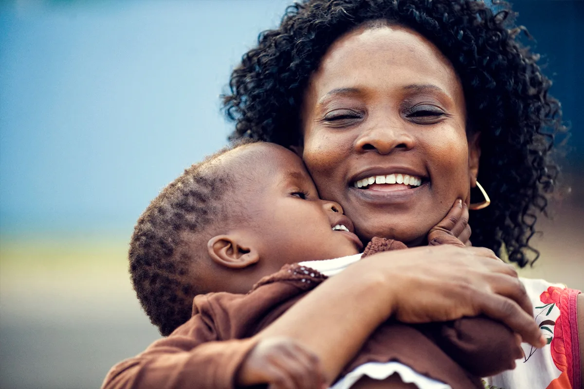 vrouw met kind knuffelen - case SOS Kinderdorpen