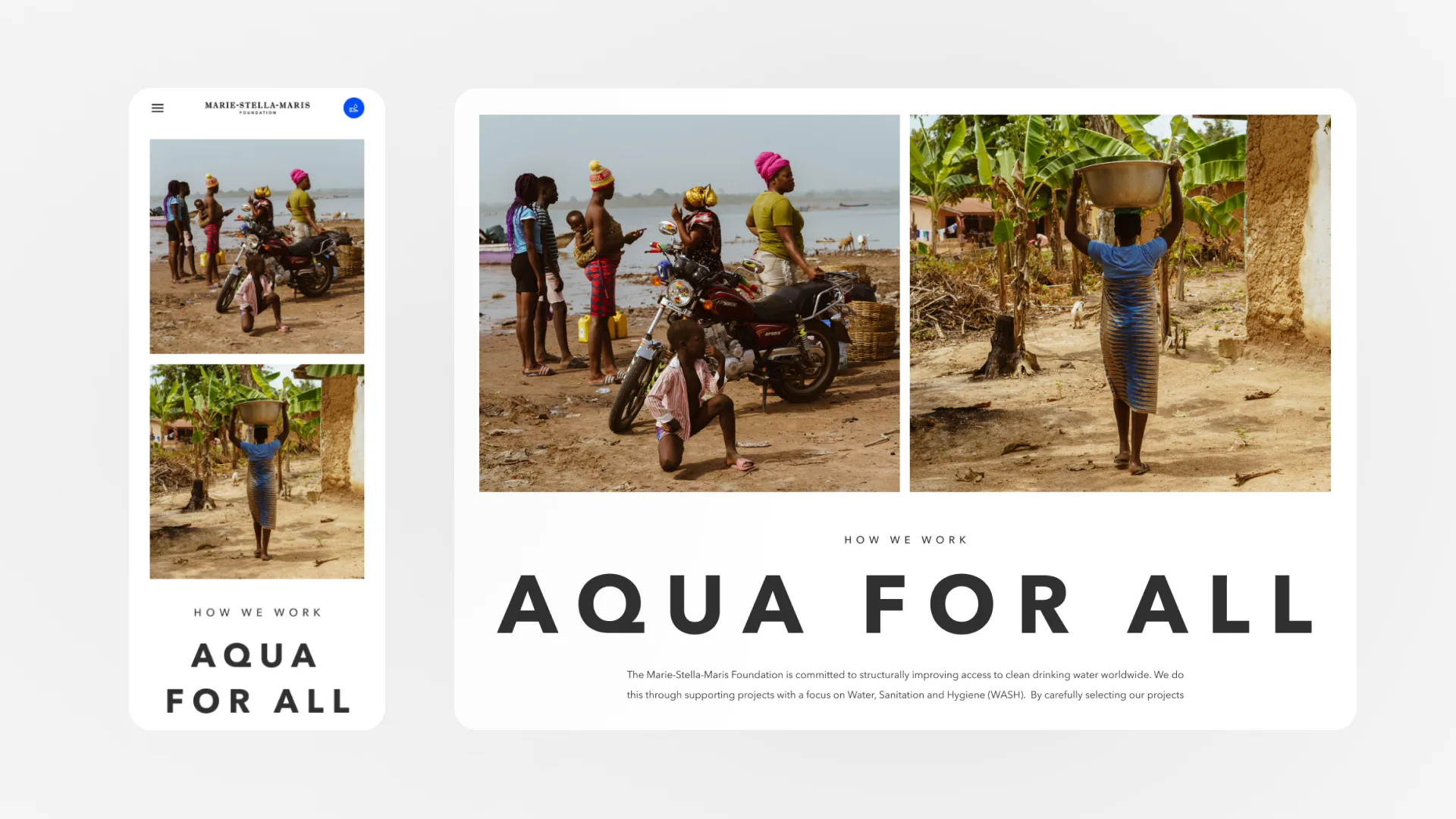 Marie-Stella-Maris landingspaginas voor foundation Aqua for all