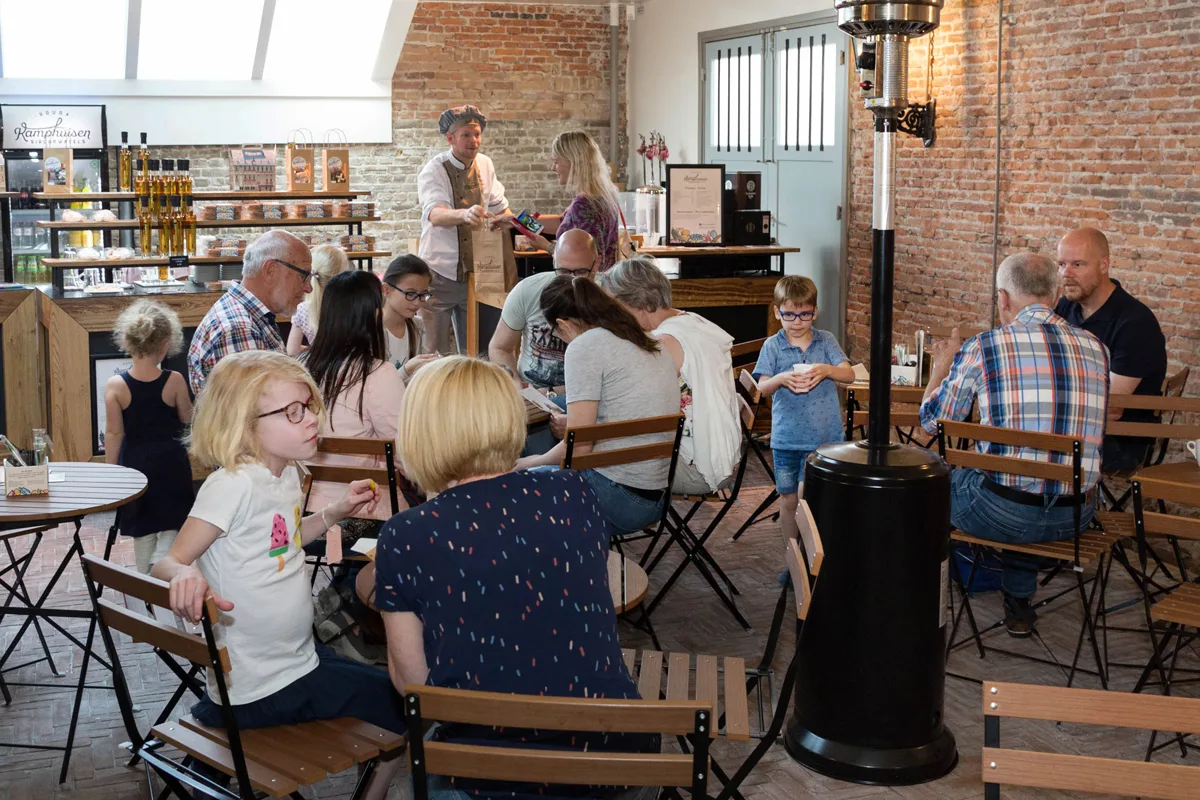 cafe met mensen aan tafels die aan het etn en drinken zijn - case Siroopwafelfabriek