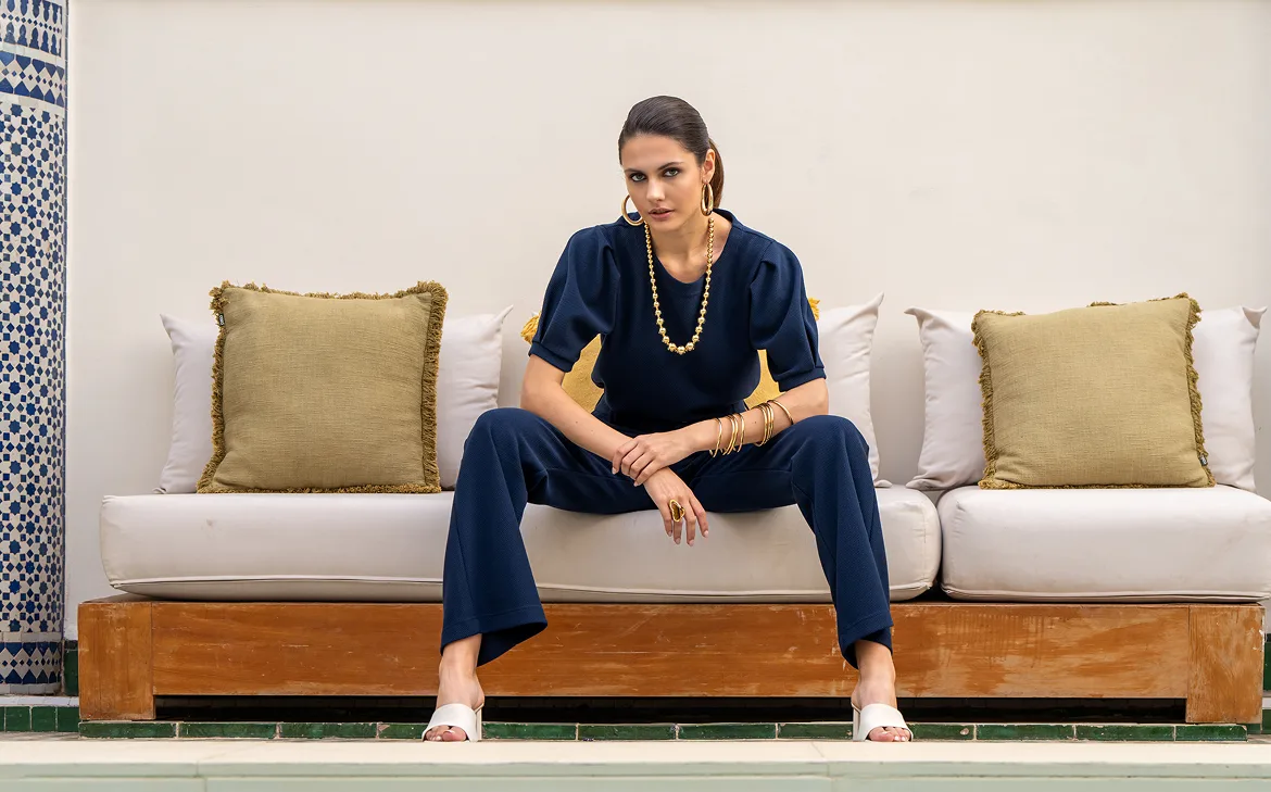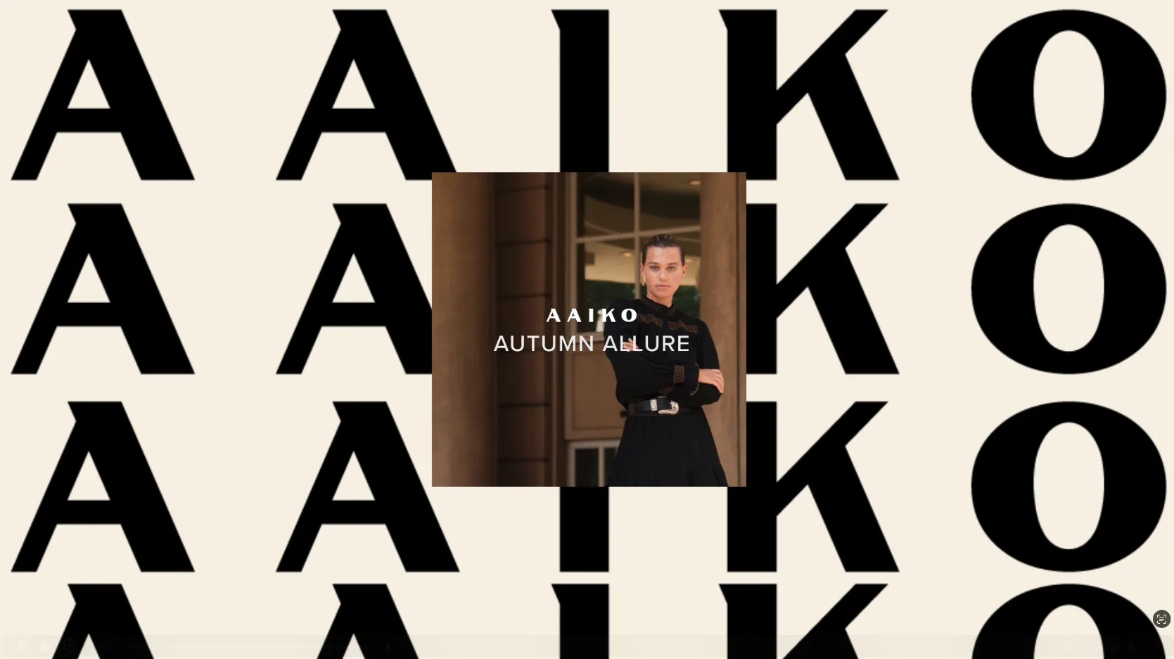 vier keer de naam Aaiko als achtergrond en daarvoor een afbeelding van een vrouw die poseert in de kleding van Aaiko